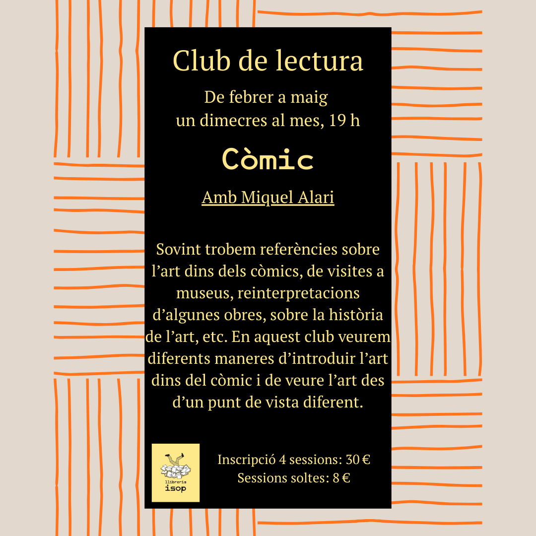 El còmic es considera avui en dia com el 9è art o l’art seqüencial. A vegades com un subgènere de la literatura o com un art menor a la pintura. Tot i així molts dels autors i autores han cursat estudis de belles arts i són amants de l’art. Per això ens trobem algunes referències sobre l’art dins dels còmics, de visites a museus, reinterpretacions d’algunes obres, sobre la història de l’art, etc. En aquest club veurem diferents maneres d’introduir l’art dins del còmic i de veure l’art des d’un punt de vista diferent.