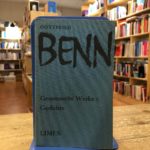8. Sämtliche Werke [Obres completes], de Gottfried Benn. Poeta i assagista alemany nascut a Mansfeld en 1886. Va fer cursos de filosofia, poesia i metodologia literària, i finalment va acabar medicina a l’Universitat de Marburg allistant-se com a metge militar en la I Guerra Mundial. Les seves publicacions de llavors van representar fidelment l’expressionisme alemany, amb obres com “Fills” el 1913 i “Carn” el 1917. En la dècada dels anys quaranta, desil·lusionat amb el règim nazi i marginat pel cercle literari del seu país, es va refugiar en els seus escrits produint calladament una part molt important de la seva obra. El 1946 va publicar “Poemes estàtics”, sent reconegut llavors com el més important poeta viu d’Alemanya. Amb la publicació de les seves últimes obres, “Destillationen” el 1951, “Fragmenti” el 1953 i “Aprèslude” el 1955, va culminar la seva brillant trajectòria com a poeta. Va morir a Berlín al juliol del 1956.